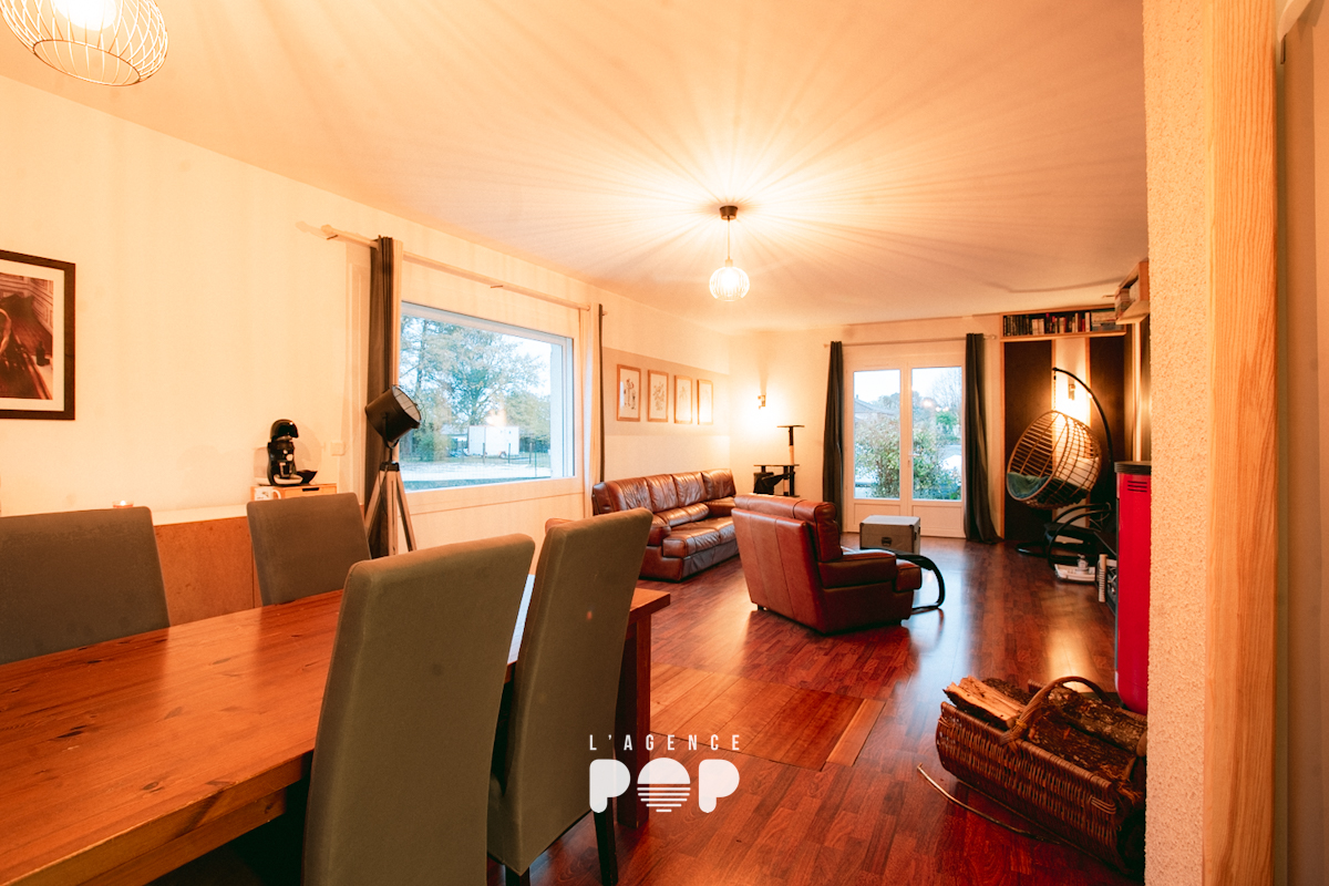 Vous vous garez devant la maison ou descendez directement au garage en sous-sol par le portail arrière. Une terrasse couverte vous accueille sur l’avant de la maison et vous pourrez en profiter pleinement qu’il pleuve ou qu’il fasse beau. Vous poussez la porte et l’entrée vous reçoit : moderne, refaite à neuf, avec tous ces rangements astucieux ! Sur votre droite, une ouverture dévoile le coeur de la maison : le séjour ! La première chose qui vous frappe, c’est cette sensation d’espace et de lumière. Le salon vous invite immédiatement avec ses belles teintes boisées, chaleureuses et apaisantes. L’espace salle à manger s’enchaîne naturellement, puis la cuisine aménagée et équipée s’étire en longueur. Tout communique, tout respire… idéal pour profiter de votre pièce de vie en famille ou entre amis. On se sent tout de suite bien chez « CAHORA ». Côté nuit, le couloir dessert deux chambres, une pièce parfaite pour un bureau ou un dressing, une salle de bain moderne avec double vasque et un WC séparé.