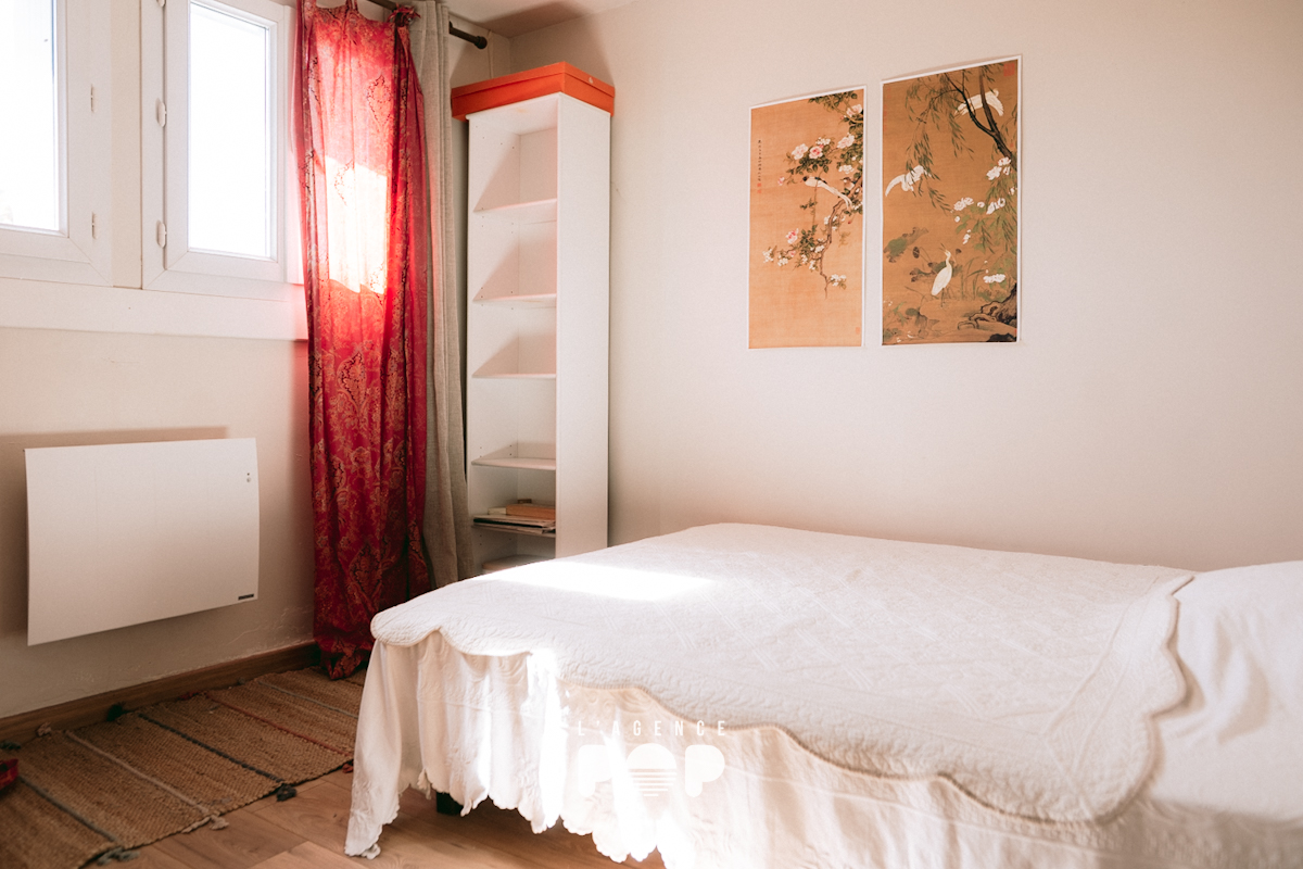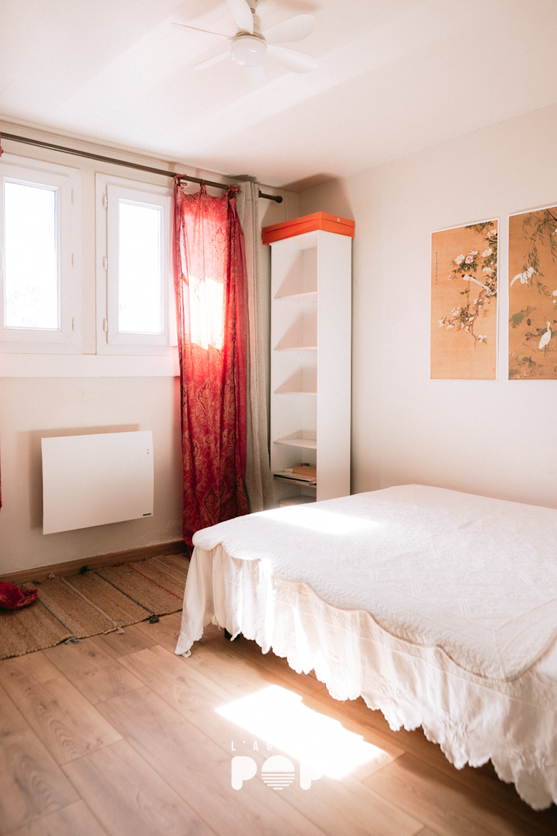 Au 3ᵉ étage d’un immeuble en pierre, à Périgueux, vous poussez la porte d’ »ÉGLANTINE”. Dans cet appartement vous profiterez d’une entrée pratique avec placard desservant la pièce de vie mais aussi l’espace nuit. Tout de suite, la lumière vous enveloppe et met en valeur le mur en pierre et la belle hauteur sous plafond de la pièce de vie. Vous découvrez une pièce traversante, spacieuse et chaleureuse, où chaque détail semble pensé pour que vous vous sentiez bien.