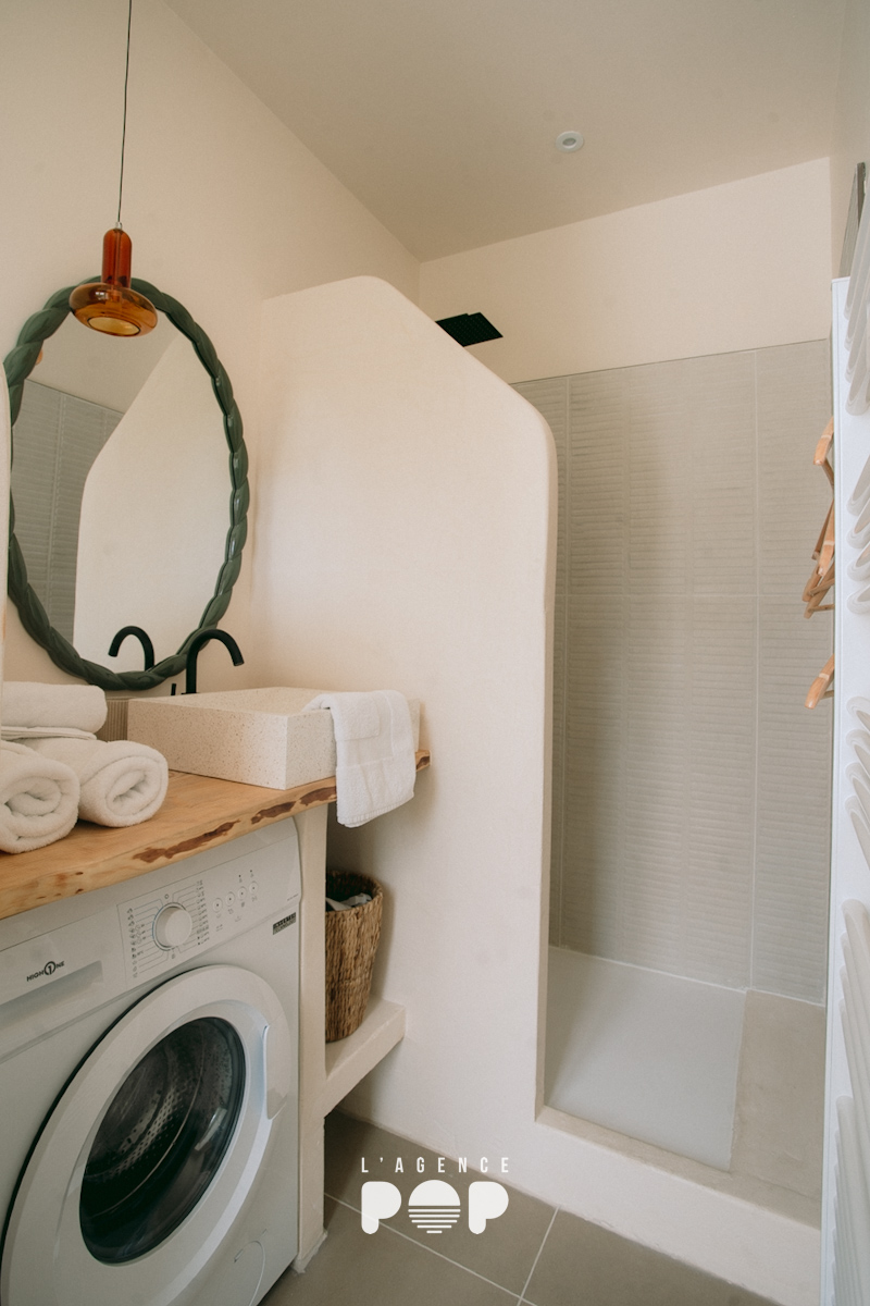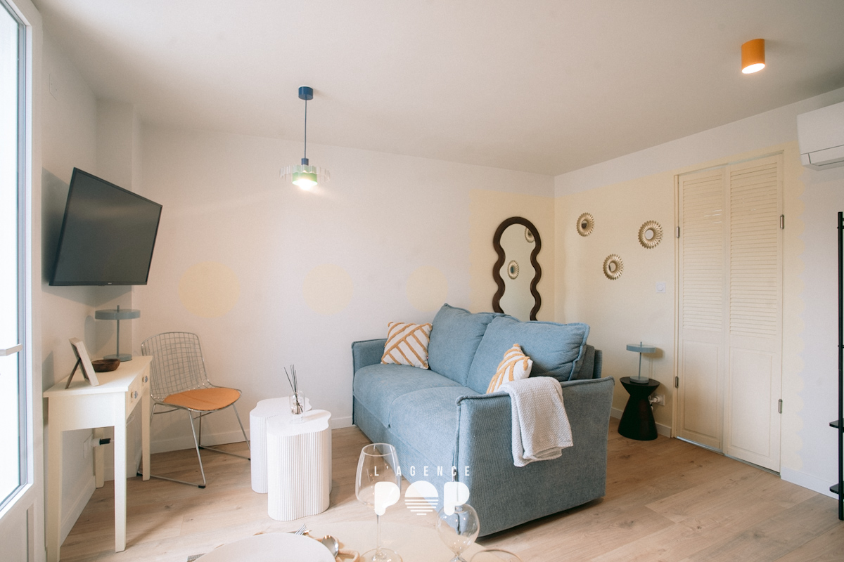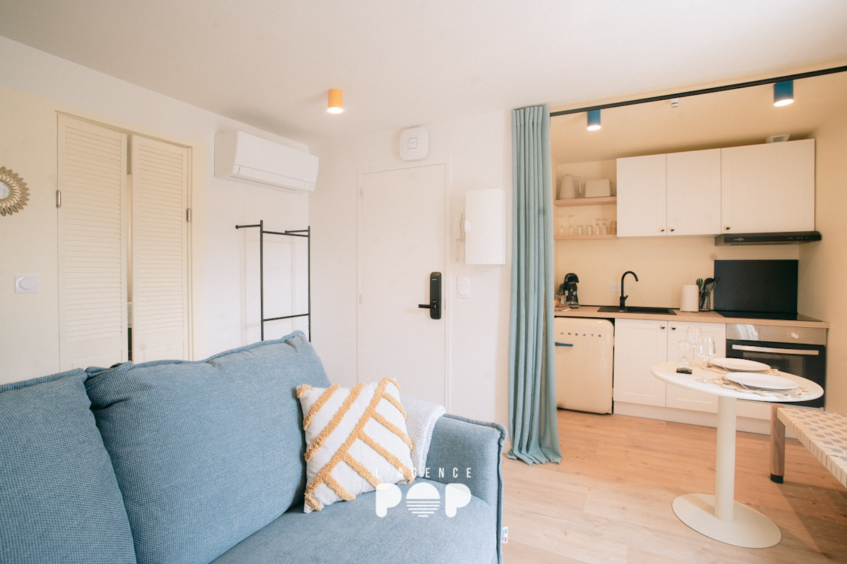Derrière sa façade, l’immeuble s’organise sur 147 m², répartis en 4 logements meublés, chacun avec une ambiance soignée et cohérente, complétés par un espace dédié à l’exploitation (pour le linge et l’entretien). Chaque détail a été pensé pour une gestion simple et efficace : serrures connectées, climatisation réversible pilotable à distance et logements classés meublés de tourisme.