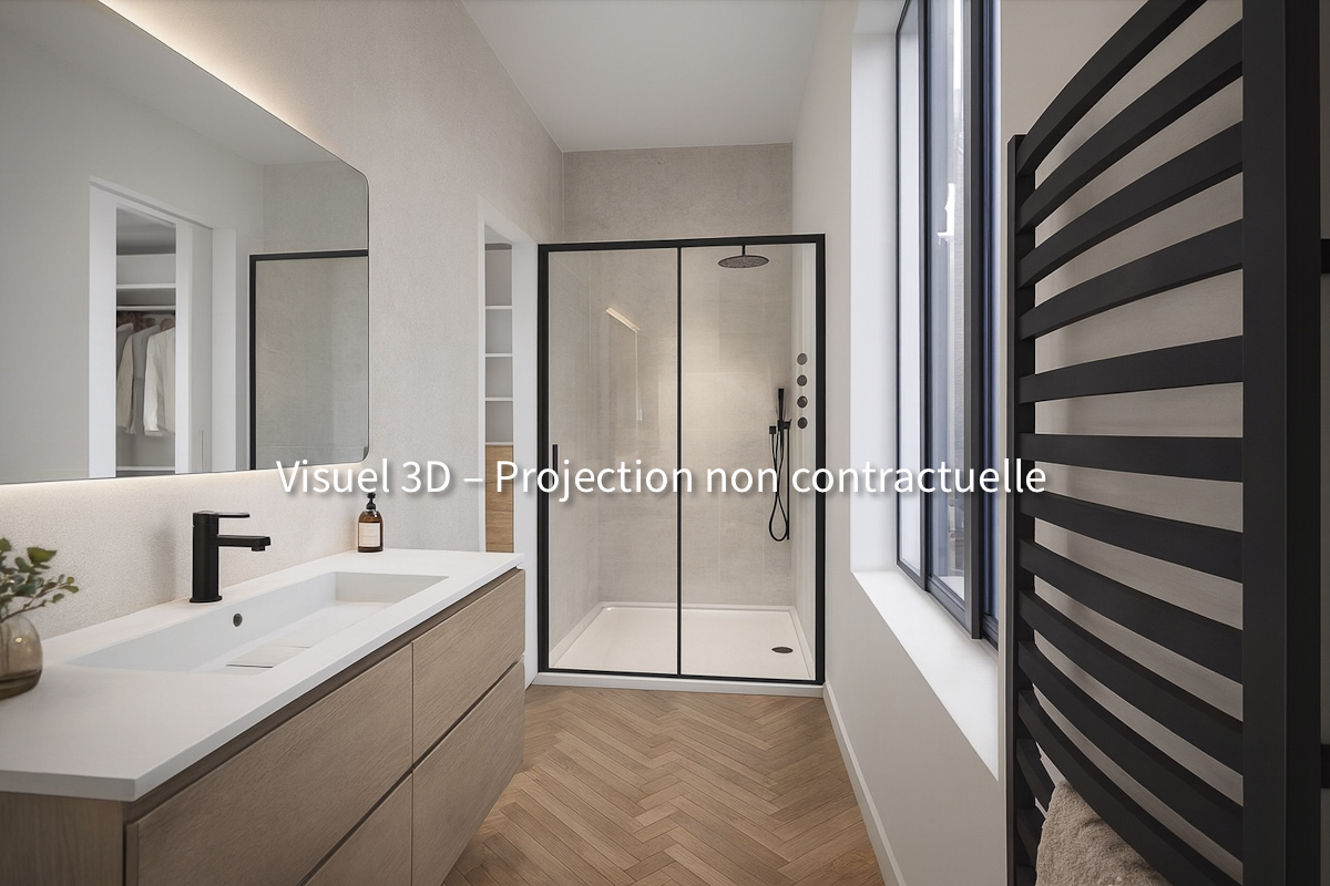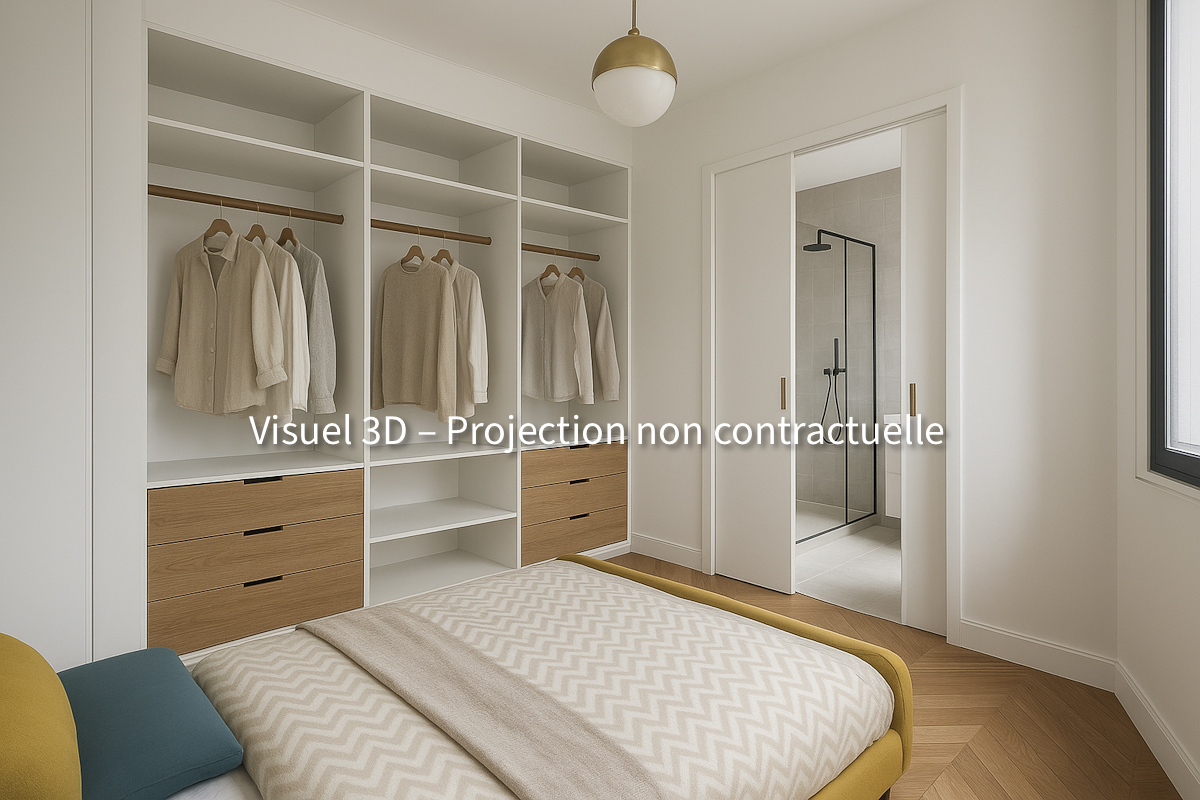 Les visuels présentés sont des projections 3D, non contractuelles, permettant de se projeter dans l’ambiance et les prestations futures de l’appartement.