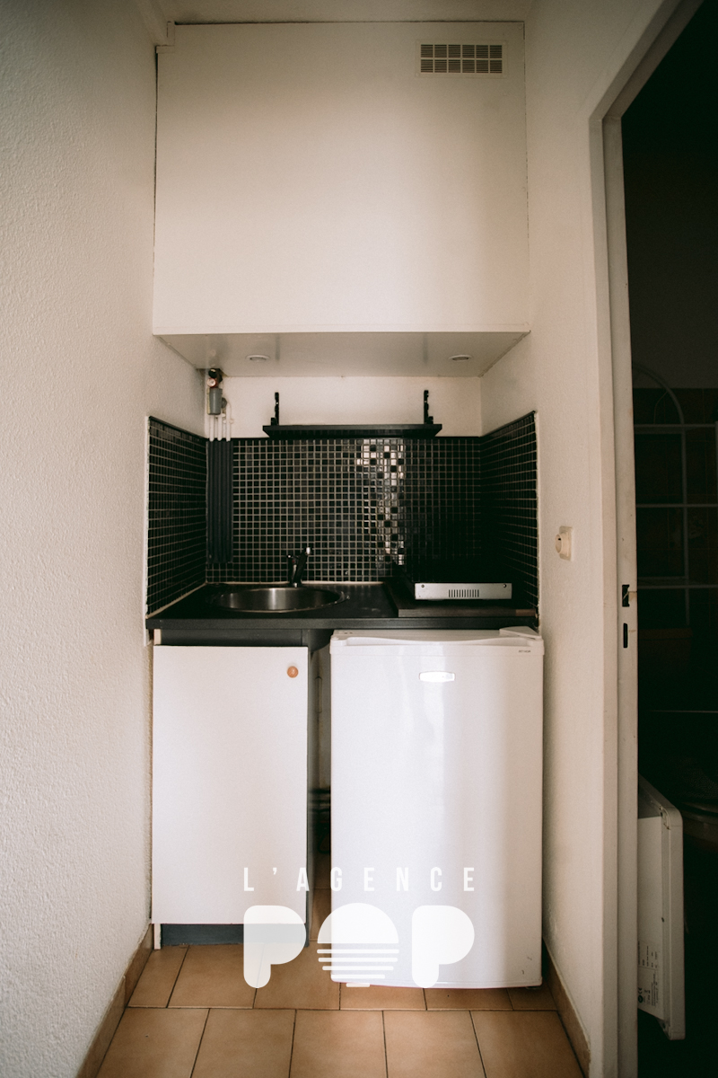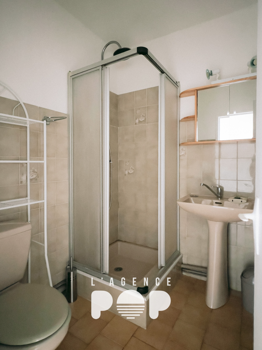 La porte vitrée de l’appartement s’ouvre directement sur la pièce principale. C’est un espace bien pensé où l’on peut facilement imaginer un coin bureau pour travailler, accompagné d’un canapé-lit pour les moments de repos. Dans la continuité de la pièce, la kitchenette trouve naturellement sa place pour préparer les repas du quotidien. Juste à côté, la salle d’eau avec WC complète l’ensemble. L’appartement nécessite quelques petits travaux et un rafraîchissement général, mais sa base simple et fonctionnelle laisse entrevoir un joli potentiel pour créer un studio pratique et agréable !