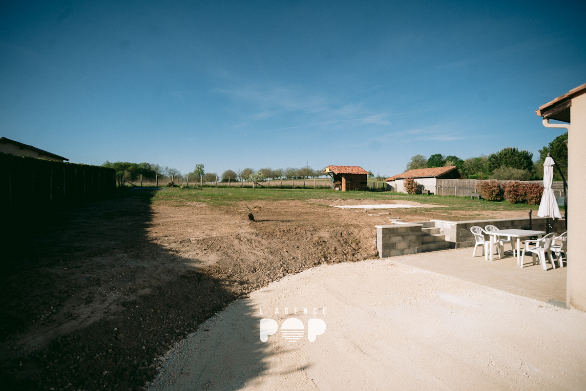 À l’extérieur, la maison s’inscrit sur un terrain de 1671 m2, offrant un cadre de vie calme et agréable, en pleine campagne mais sans isolement. Les aménagements récents, avec une terrasse en béton désactivé et un stationnement en castine, apportent un véritable confort supplémentaire. Un cabanon de jardin ainsi qu’un espace pouvant faire office d’atelier viennent compléter l’ensemble.