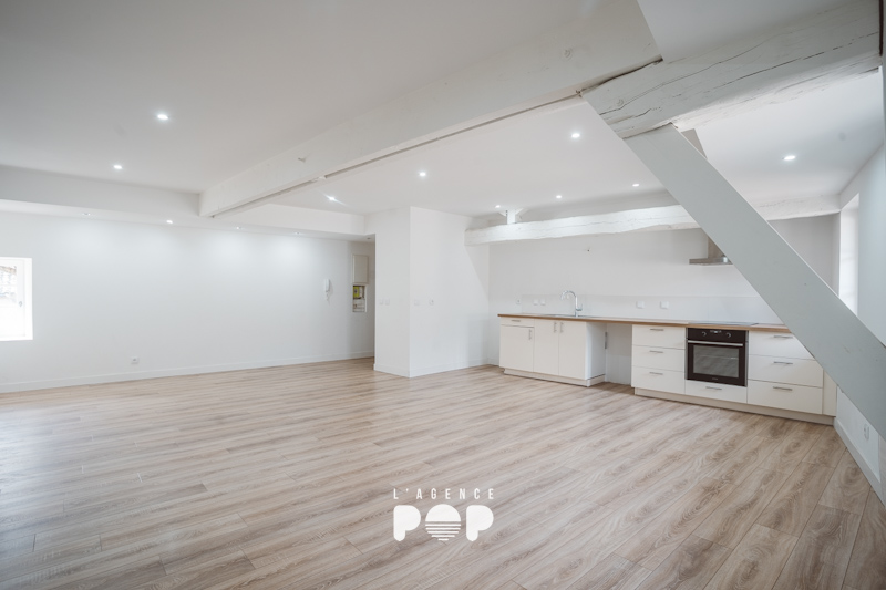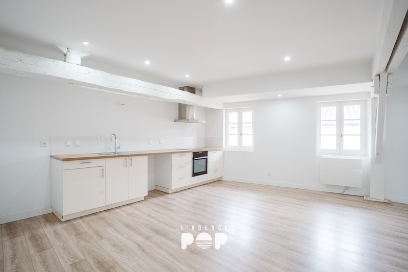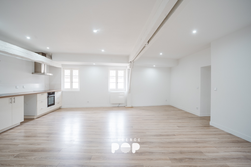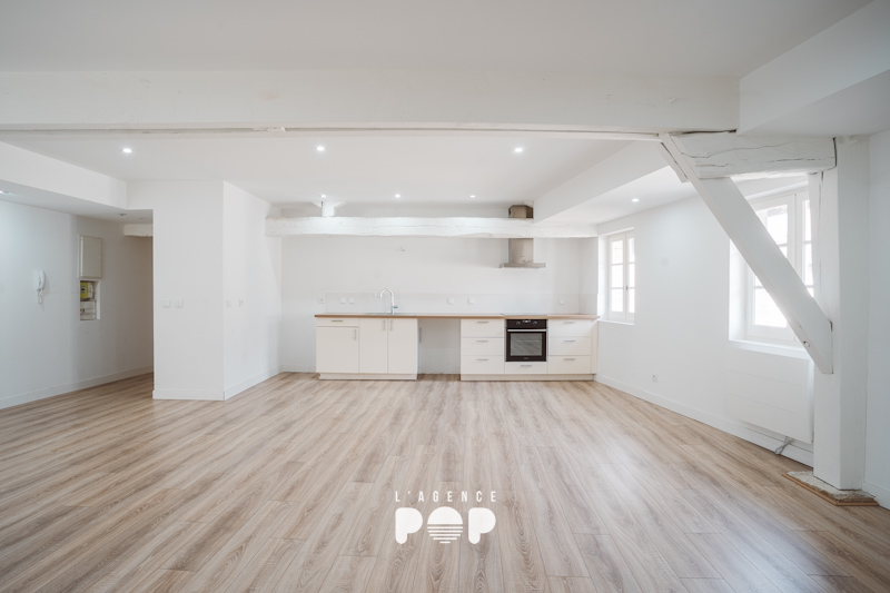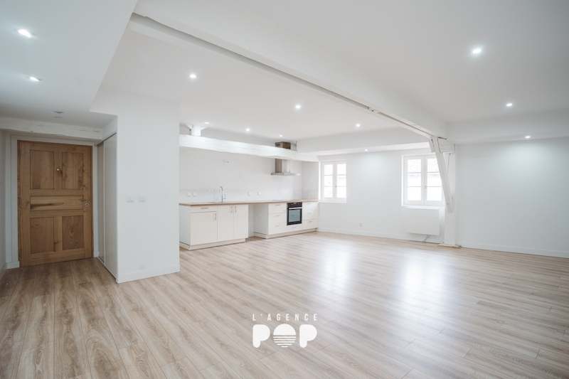 Situé au 3ème et dernier étage du 12 rue Limogeanne, « MEREDIEU » fait 88 m² et offre une atmosphère unique. Dans l’entrée, un placard intégré accueille discrètement vestes et affaires du quotidien, avant de laisser place à un vaste séjour baigné de lumière. Ici, les poutres apparentes et le parquet d’origine racontent l’histoire du lieu et confèrent à la pièce une élégance naturelle, chaleureuse et intemporelle.